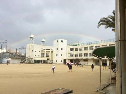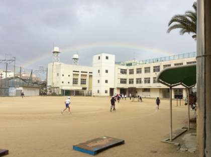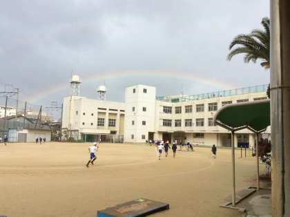 1月のある日、聖賢小学校にきれいな虹がかかりました。