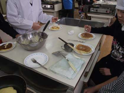 5年生の子どもたちが、家庭科の調理実習で「ホットケーキ」を作りました。おいしかったです。