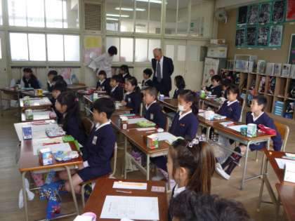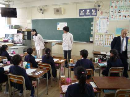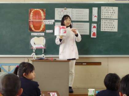 今日、2年生の子どもたちが、専門の先生と学校歯科医先生のご指導で「歯磨き」の仕方や歯(口腔)について勉強しました。