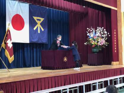 代表の児童はとても緊張したそうですが、しっかりと受け取ることができました。