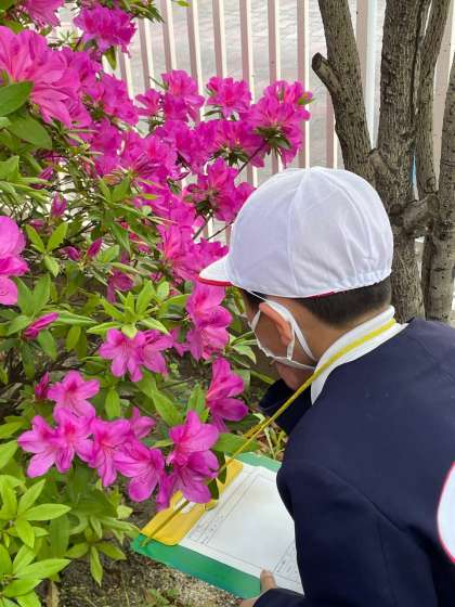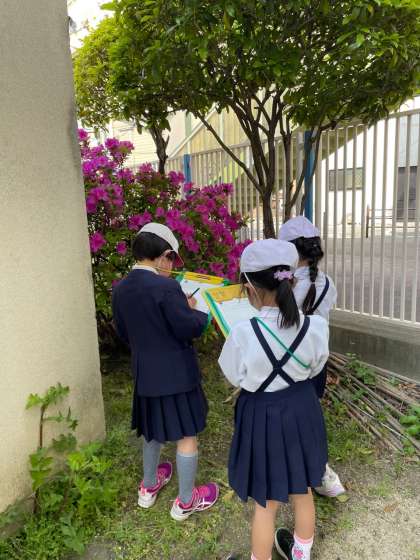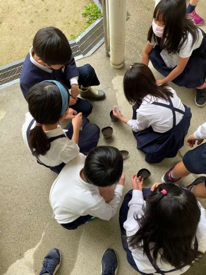 生きものの観察では、虫メガネの使い方や観察の仕方を学習し、実際に一人一人が調べたいものを観察しました。
