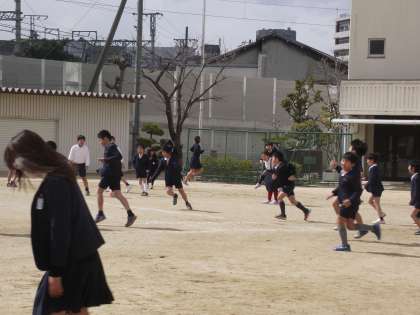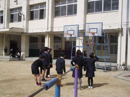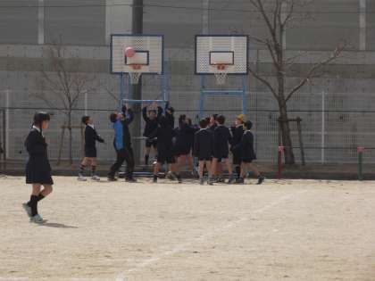 高学年では、バスケットボールが好まれているようです。他学年は、元気に走りまわってます。