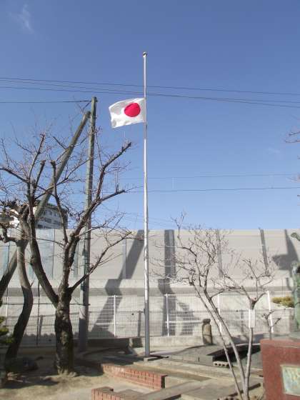 本日は、日本中の多くの施設で「半旗掲揚」です。聖賢小学校でも、地震や津波の避難訓練をしています。