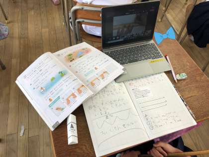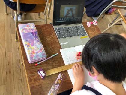言葉だけでは分かりづらい直線の描き方も、動画が音声付きで見られるので、安心して子ども達は練習に取り組んでいました。