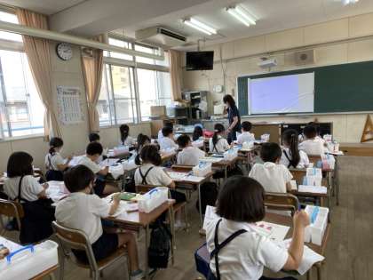初めての絵の具。みんな塗ることに真剣になって取り組んでいました。上手に塗れる子や、用意・片付けが早い子が多かったです。