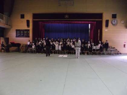 4月7日の「入学式」にむけて今の1年生(入学式時は2年生)が、一生懸命『お迎え』の練習をしています。