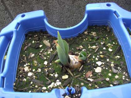 1年生が世話をしているチューリップ(人権の花:大阪法務局)も、春をめざして頑張っています。