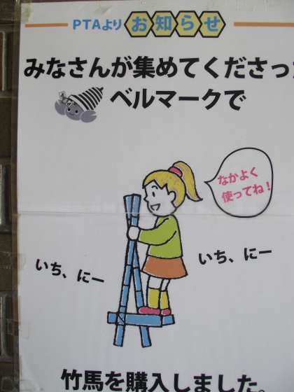 「ベルマーク」も集めています。『竹馬』も置き場所を南門(寝屋川方向)近辺に移動しました。『一輪車』はジャングルジム近辺(JR線路付近)になりました。