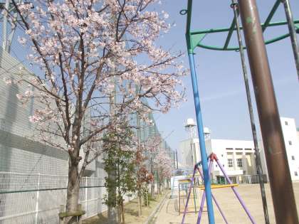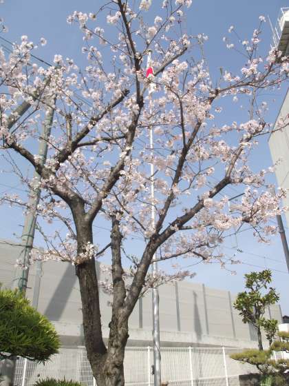 運動場のJR線路側に植わっている桜も開花しました。入学式は4月7日(火)ですが、それまで咲いていてほしいです。