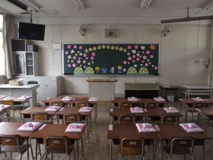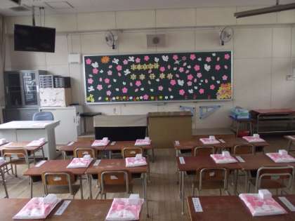 新1年生が明日入室する教室も、きれいに飾りつけられました。