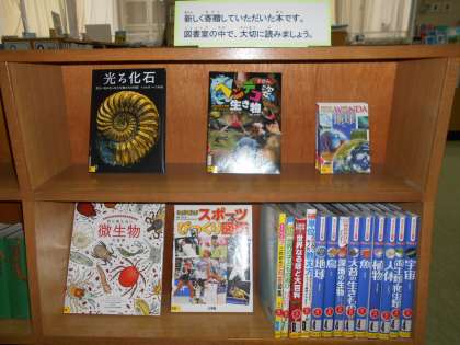 (公財)日本教育公務員弘済会大阪支部より、「ブックパック事業」として、図書を寄贈していただきました。図鑑が多く、お金、世界の遊びなど、面白そうな図書です。図書館にコーナーができていますので、新学期が始まったら、ぜひ図書館で読んでね。