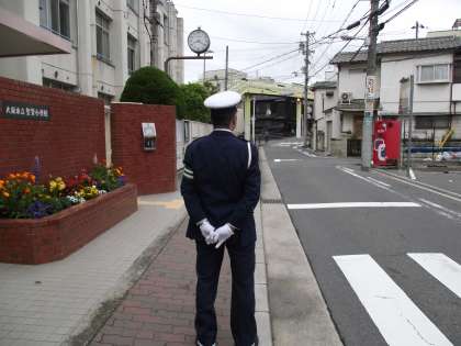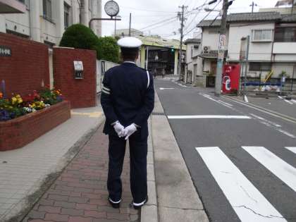 今日は、正門でお巡りさんが子どもたちの安全を見守ってくれました。「止まってくれた車にお礼しましょう」と言われると「ありがとうございました」という子どももいました。