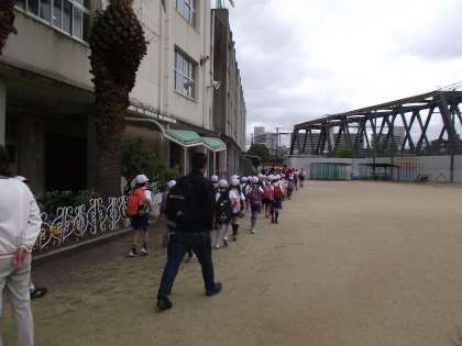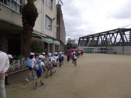 3年生4年生が、遠足に出発しました。JR京橋駅から四条畷駅まで行って、深北(ふかきた)緑地をめざします。