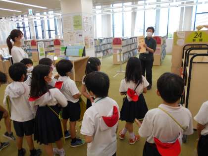 2年生が生活科で公共の場所を訪れる学習があり、大阪市立城東図書館へ行きました。図書館の方の話を聞いたり、施設の中を歩いたりしました。