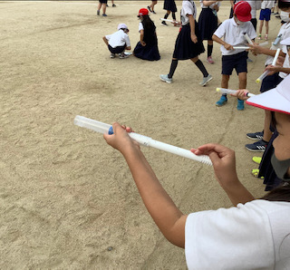 空気でっぽうで玉を飛ばしてみました。これは実験です。どんなことを学習していくのでしょうか。