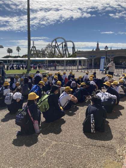 志摩スペイン村に着きました。修学旅行の学校がたくさん。