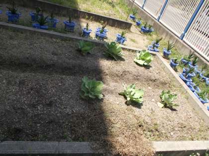 2年生のチューリップは、花弁が落ちたものが多くなりました。別の花壇では、新しい命がみずみずしく輝いていました。