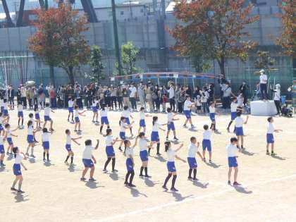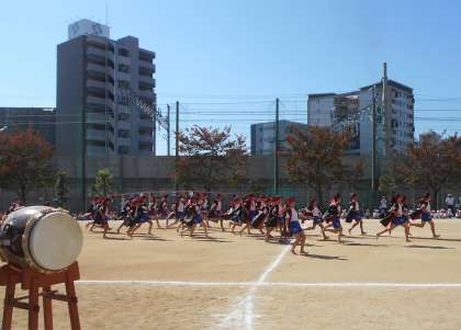 高学年の団演。5年な洋楽にのって、6年は聖賢ソーランを披露。