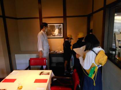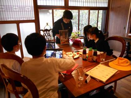 昨日に引き続き、がもよんにある古民家再生に関わるお店の取材へ、5年生が行きました。