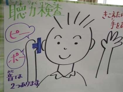 今日は、耳鼻科検診です。聴力検査も行っています。