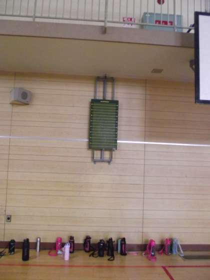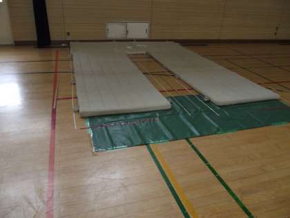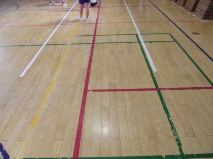 「垂直とび」と「反復横とび」(白ライン)と「立ち幅跳び」です。