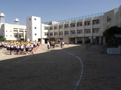 1年生はボールをもって、2〜6年生はボールをけってリレー競争しました。