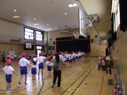 今日は、「1年生」と「6年生」が『聖賢音頭』を教えていただきました。1年生は初めての聖賢音頭ですが、6年生の間に入って上手に練習できました。