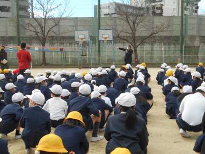 本日は地震と地震後の津波の発生時の避難訓練をしました。
