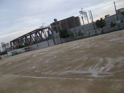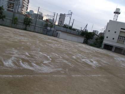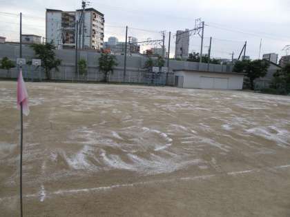 金曜日夕刻、「にがりまき」した後の運動場の状態です。
