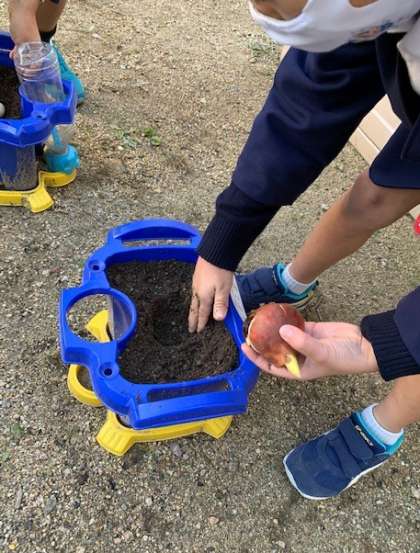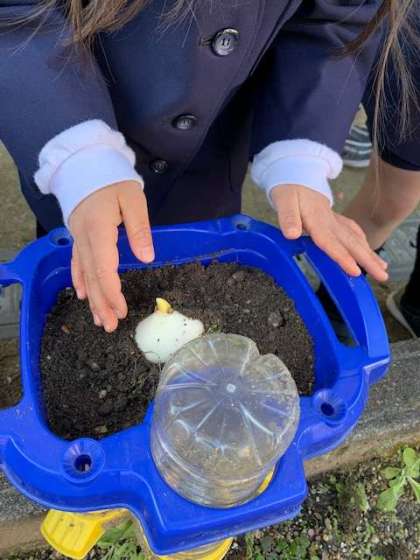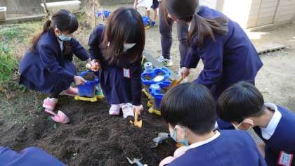 しん1年生のために、チューリップのきゅうこんをうえたよ。