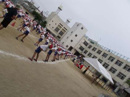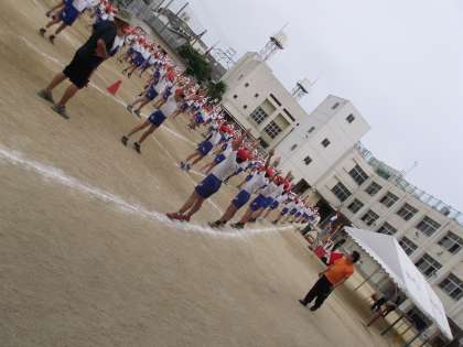 運動会の「ラジオ体操」時、運動委員会メンバーは前に出て、お手本をします。以前築港中学校の先生に教えて頂いたことを思い出して上手にかかとを上げたり、胸をそらしたりしていました