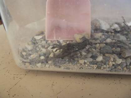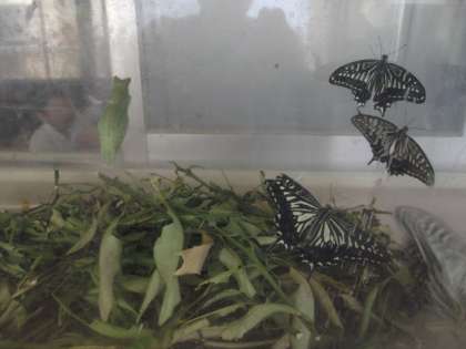この土日で、結構「羽化」したとの事。成虫は観察後、空に戻ってもらうそうです。ヤモリは元気ありません。