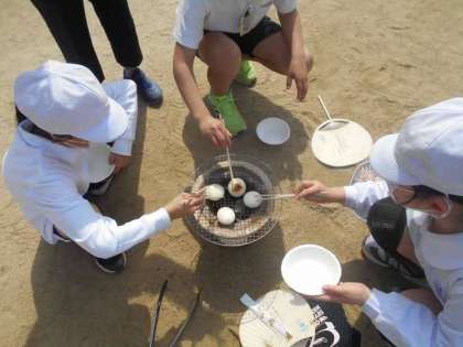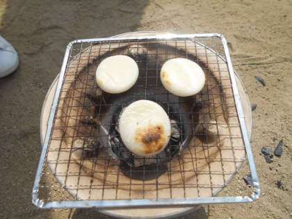 七輪体験をしました。炭で火をおこす大変さ、炭で焼いたおもちのおいしさを味わいました。