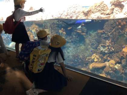 ペンギンやイルカ、アザラシたちを見て、「かわいい!」「こっちに来た!」と大喜び♪