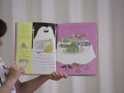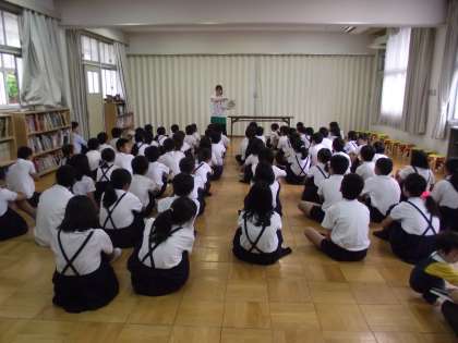 今日の〔図書ボランティア〕さんによる「読み聞かせ」は、5年生です。多目的室で、8:30から1時間目が始まる(8:50)まで、3冊のお話を聞きました。面白かったです。