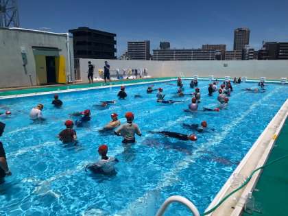 ?昨日と今日、セントラルウェルネスクラブ蒲生のインストラクターの方に来ていただき、3〜6年生に着衣水泳の授業をしていただきました。