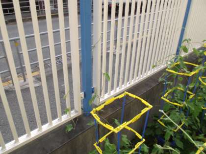 どうやら、1年生の諸君は「絡み」を『ほどく』という作戦に出たようです。本日、7時過ぎに朝顔を見に行ったら、そこかしこに「絡み」を「ほどいた」形跡がうかがえました。しかし、アサガオさんの生命力はすごくて、周りの蔓と絡み合おうと頑張っている様子もありました。フェンスにしっかり巻きつく感じもあります。頑張れ、どうする1年生。
