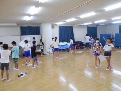 残念!雨がやんでいますが、雷注意報が出ているため、カヤックは中止です。しかし、室内オリンピックを楽しみます。只今、準備中。