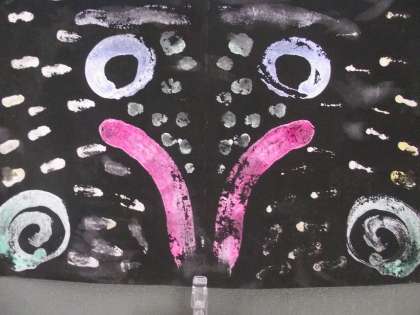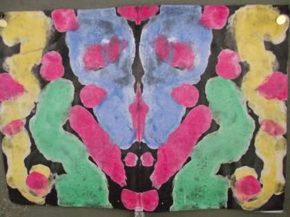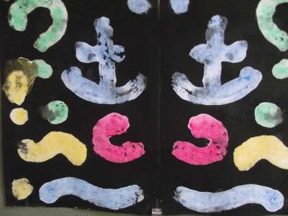 3号階段踊り場、6年掲示作品の一部です。