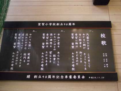 講堂にある「校歌」です。平成30年度は、創立100周年を思い出しました。
