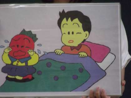 「なかまはずれに しないで」人参嫌いの男の子が、内緒で人参を捨てます。その夜、夢に人参ちゃんが出てきて泣きます。いろいろあって男の子は人参を食べられるようになって、仲間外れは無くなりました。