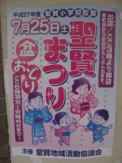 「聖賢まつり」本番は、来週25日(土)です。聖賢小学校校庭で午後3時より開催。明日19日は、まつりの準備です。