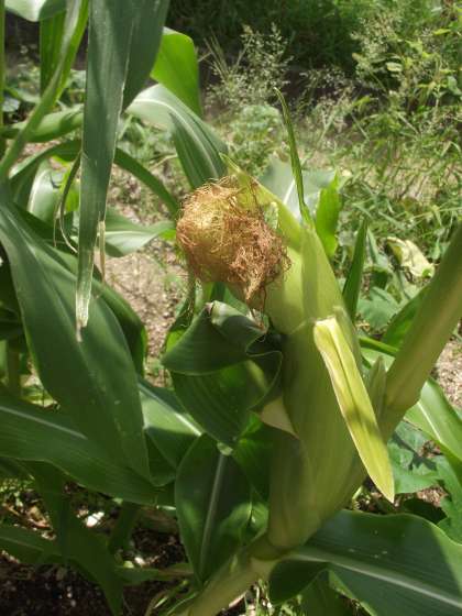 学習園に行ってみると、トウモロコシの横に、お「豆」さんがいらっしゃいました。