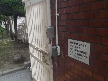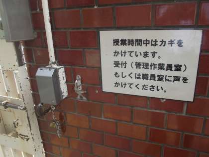 正門や小門は、普段子どもたちが授業している時間はロックされています。用事で入校されて、退出されるときは、職員室か管理作業員室にお申し付けください。ご自身では小門等を開けられません。