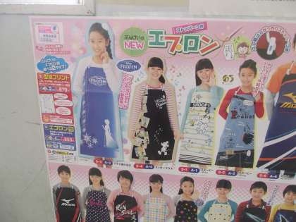2学期に作成するであろう「エプロン」の柄等を選ぶポスターが、廊下に貼られていました。