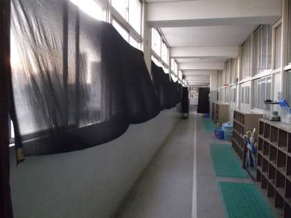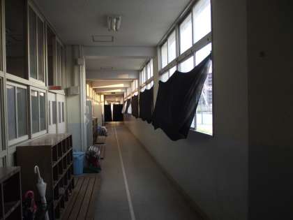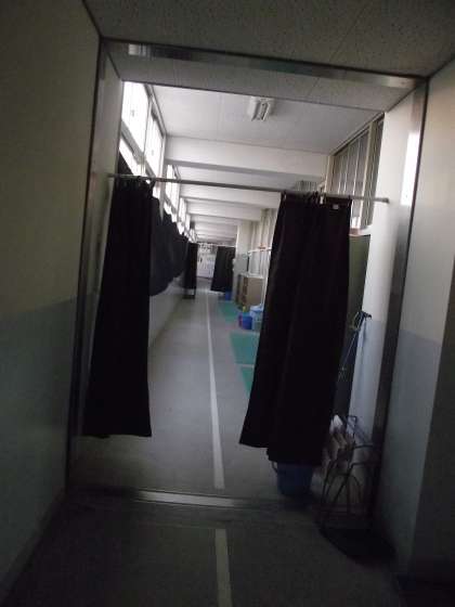 暗くなったら、けっこう雰囲気の出る校舎廊下です。