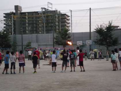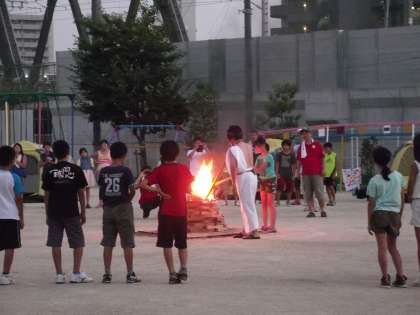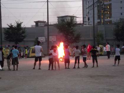 今、やってます。キャンプファイヤー。けっこう盛り上がってます。