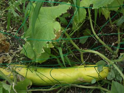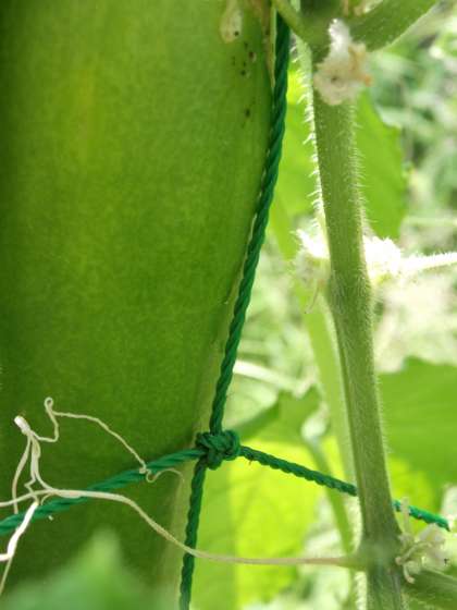 誰も収穫しない胡瓜さんは、もはや瓜へとその姿を変えつつありました。ずいぶん昔30年以上前、とある学校で瓜のように育った胡瓜を家にもって帰って食べましたが、味も瓜でした。縦の写真も瓜のような胡瓜の一部です。