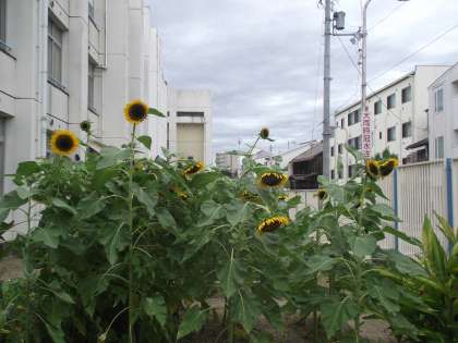 学習園の向日葵は、元気よく咲いていました。