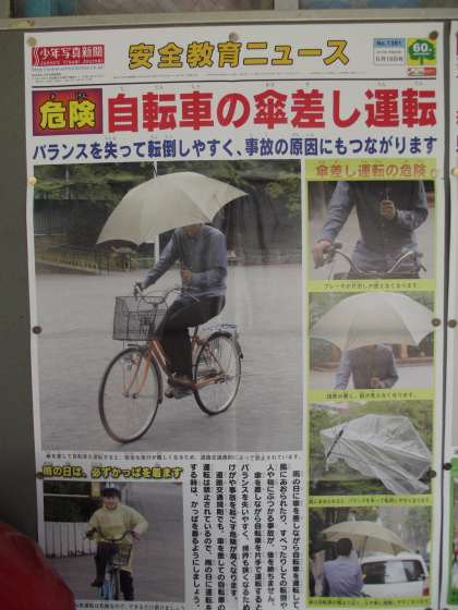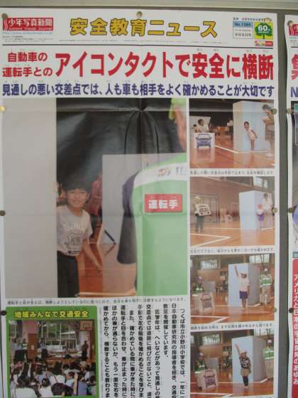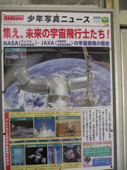 「危険な傘さし自転車運転」、「アイコンタクトで安全横断」、「めざせ宇宙飛行士」。今までは他の所に掲示されていたと思うのですが、今月は一等地に掲示です。